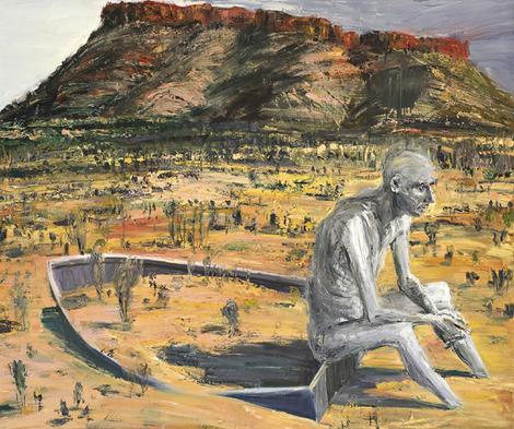 Figure Sitting on Boat In Desert, by Euan MacLeod
