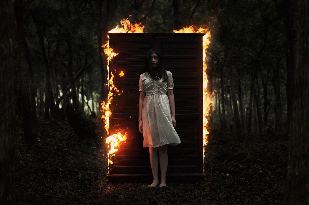Pierced by flame